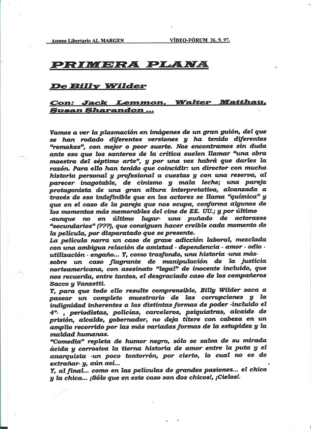 Vídeo Fórum «El sensacionalismo en la prensa», «Primera plana», 26 septiembre 1997