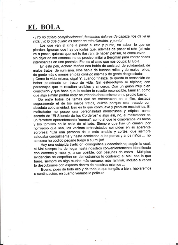 «El Bola» de Achero Mañas, 26 octubre 2001