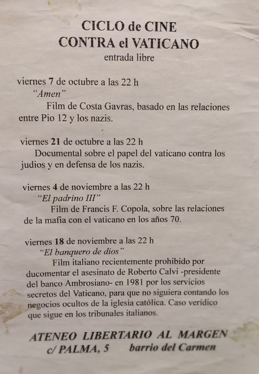 Ciclo de cine contra el Vaticano, 7 octubre 2005