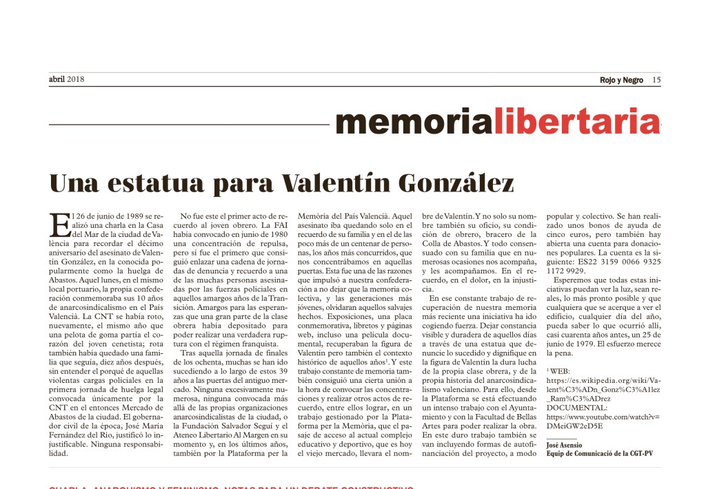 «Una estatua para Valentín González», abril 2018