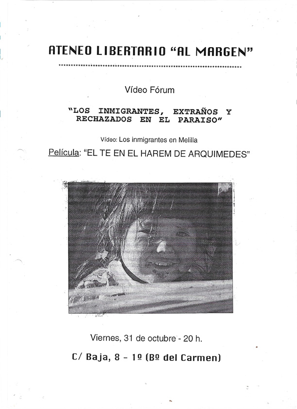 Vídeo Fórum «Los inmigrantes, extraños y rechazados en el Paraíso», “El té en el harem de Arquímedes”, 31 octubre 1997