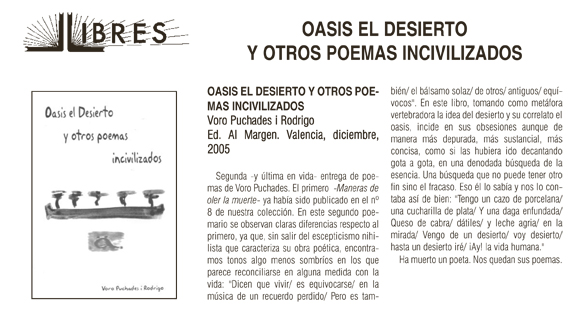 Del libro: Oasis el desierto y otros poemas incivilizados. Ediciones AL MARGEN, VALENCIA 2005