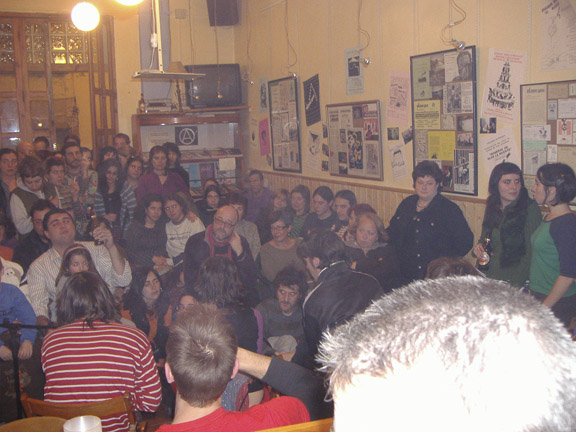 Seguramente lo que el personal que ha tenido la suerte de hacerse con este disco espera encontrar en él es un ramillete de canciones con soflamas incendiarias y críticas demoledoras contra el Estado y demás explotadores. No nos extraña, pues hay una imagen estereotipada del viejo anarquista: un barbudo serio y resoluto, que todo lo sacrifica,incluida su vida, por la revolución. En el Ateneo Libertario Al Margen no hemos querido ampliar -al menos por ahora- el ya extenso catálogo de canciones militantes o de denuncia; el Olimpo de autores contestatarios lo encontramos dignamente ocupado y en período de expansión. Llevados por una serie de casualidades hemos puesto en las manos, y en la voz, del compañero Lucho Roa un puñado de poemas de amor y desamor, de deseos y ausencias, que habían sido desempolvados en nuestras veladas literarias. No sabemos si a los autores eso nos descalifica como anarquistas; lo que si tenemos claro es que no somos unos creadores de historias rosas. Al editar estos poemas, más o menos sentimentales, no renunciamos a nuestra condición de libertarios; es más, reivindicamos con ello el sentido revolucionario que el amor puede tener. Un amor multiplicador, solidario, lejos de celos y exclusividades. Un sentimiento que impregna todo cuanto el anarquista hace y vive, que le da alas para nuevas y más transgresoras luchas. Ése es el amor que propugnamos. Creemos que la revolución libertaria tiene como principal objetivo crear una sociedad de personas tan libres como felices, plenamente realizadas en lo colectivo y en lo personal. No apostamos por ningún modelo de convivencia en concreto, cualquiera puede ser válido si los que lo conforman así lo aceptan. Nosotros a lo que aquí cantamos es a ese sentimiento que rompe barreras y convencionalismos, que arrasa con tabúes y normas, que puede durar años o acabarse en una mirada. Un amor que no nos ciegue y aísle ante el resto de la sociedad, sino que nos haga sentirnos llenos de vitalidad y ansiosos por cambiar el mundo. No queremos soñar una Utopía de revolucionarios perfectos y firmes en su ideal, estamos más por crear ya pequeñas Ínsulas de seres vulnerables pero enamorados de sus semejantes y de la Anarquía.