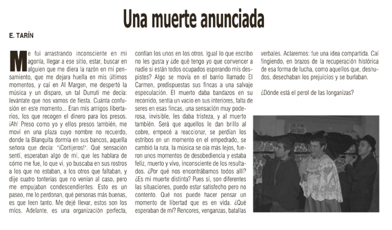 No os invitamos a “colaborar”. Vamos más allá del seguimiento. Queremos que toméis las riendas de vuestra propia voluntad. Sólo pretendemos abrir la caja de los truenos, suprimir el vacío de la sumisión, sustituirlo por la presencia de vuestra subversión creadora. La calle es vuestra.