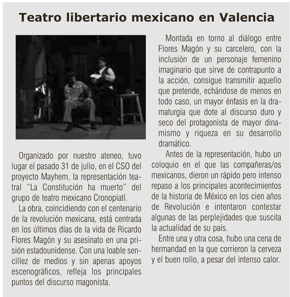 La constitución ha muerto. Obra conmemorativa de los 100 años de la Revolución Mexicana, en homenaje a Ricardo Flores Magón 31 de julio 2010, organiza Ateneo Al Margen