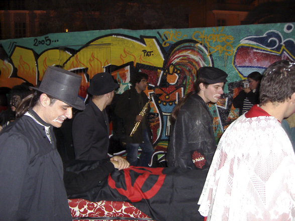 Nos proponemos tomar las calles. Provocar en nuestro entorno el surgimiento de una zona autónoma, liberar el arte de su interpretación espectacular. No somos mediadores. No vendemos nada.