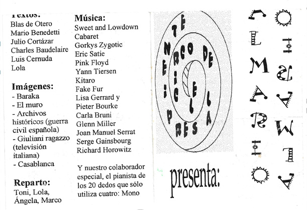 Nos proponemos tomar las calles. Provocar en nuestro entorno el surgimiento de una zona autónoma, liberar el arte de su interpretación espectacular. No somos mediadores. No vendemos nada.