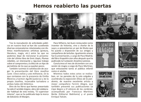 El tiempo pasa pero la fuerza no cesa. No tienen un objetivo mayor que mantener la revista todo lo que el cuerpo aguante, que por ahora lo hace de sobra. El relevo es complicado —admiten— y la situación sanitaria ha desmovilizado a parte del equipo, pero la publicación sigue siendo el bastión del Ateneo, no tienen problemas para publicarlo y mantienen público, interés y ganas.