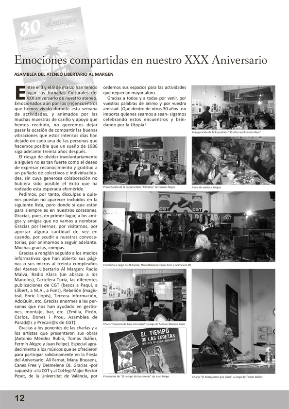 Resumen de la intervención del activista y teórico anarquista Tomás Ibáñez en el 30 aniversario del Ateneo Libertario Al Margen (Valencia) (Por Enric Llopis)