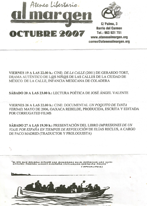 «Impresiones de un viaje por España en tiempos de Revolución», presentado por el traductor, Paco Madrid, 27 octubre 2007