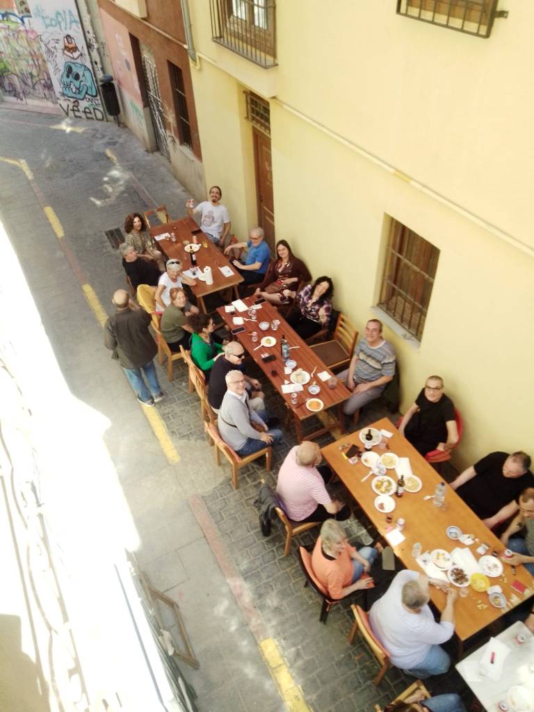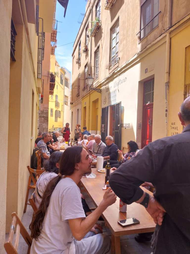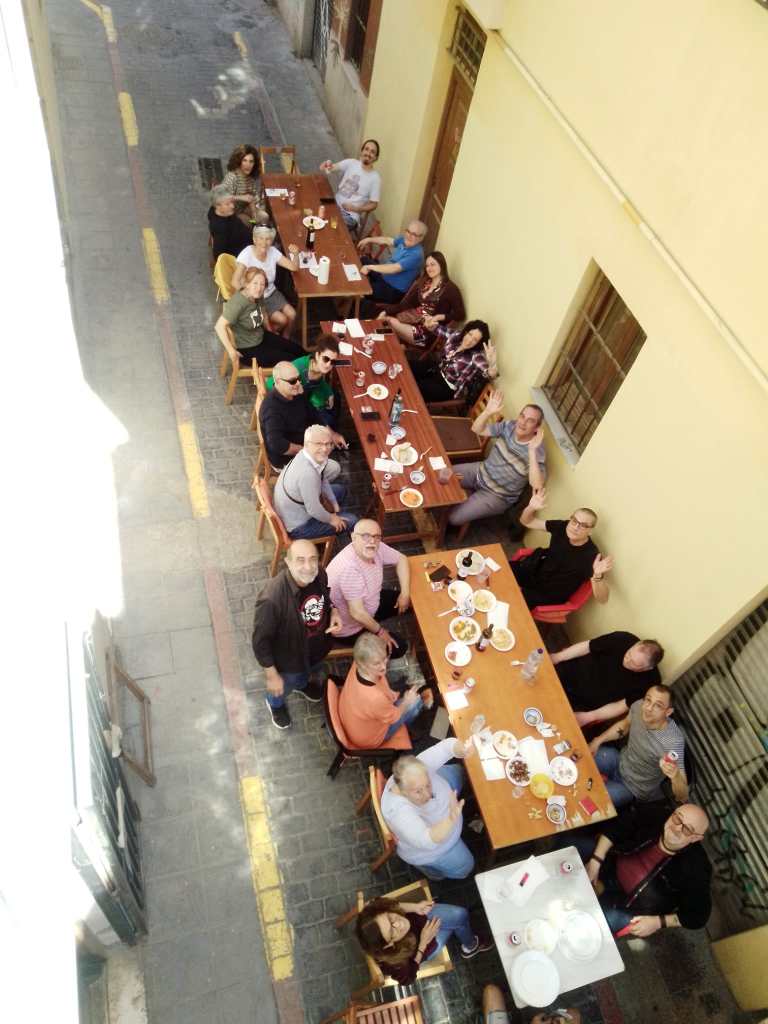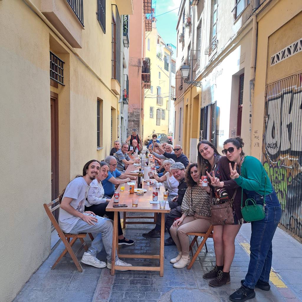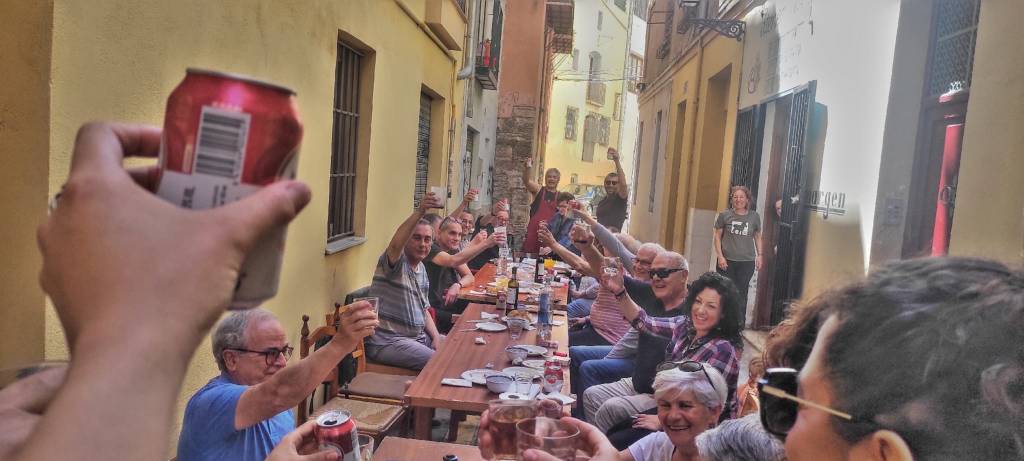 La fiesta acabó con todo el mundo cantando y bailando en la plaza y una suculenta merienda en Al Margen aportada y mimosamente preparada por el propio finado.
